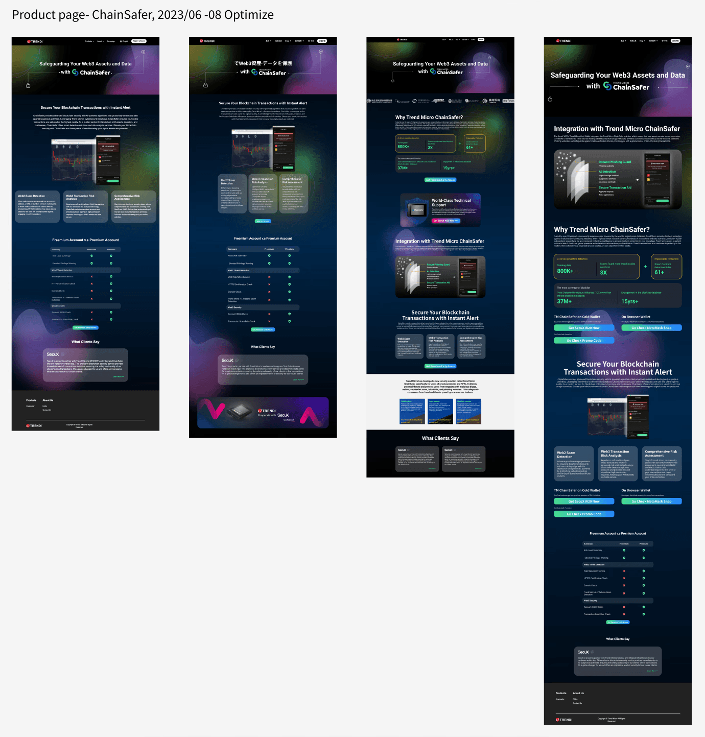 For the visual design, I used ChainSafer’s brand identity to ensure consistency. I adopted a simple and modern style and used blue and purple as the main colors to convey a safe and professional image. At the same time, I also pay attention to the readability and ease of use of information, so that users can easily find the information they need.
