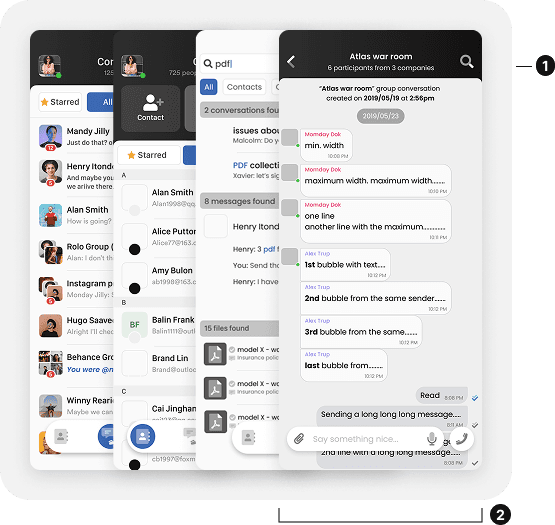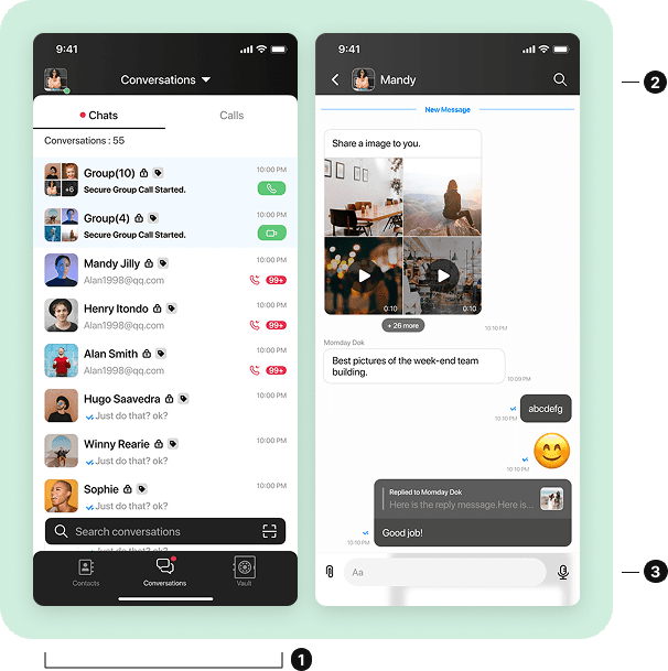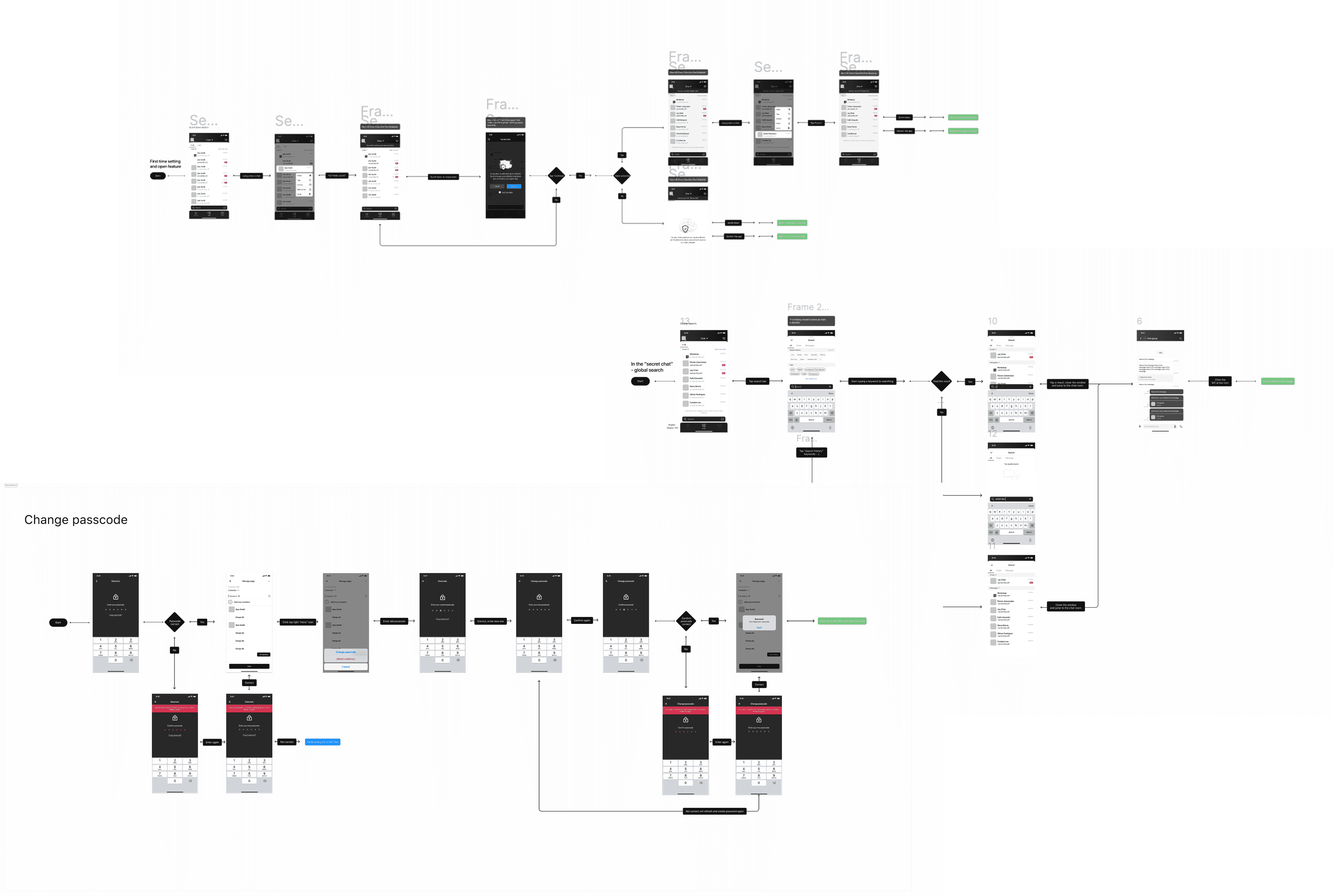 Designing the color system for an end-to-end encrypted communication app required balancing functionality with brand identity. Targeting professional users in a business context, I selected deep gray (#222222) as the primary color to convey security and reliability.