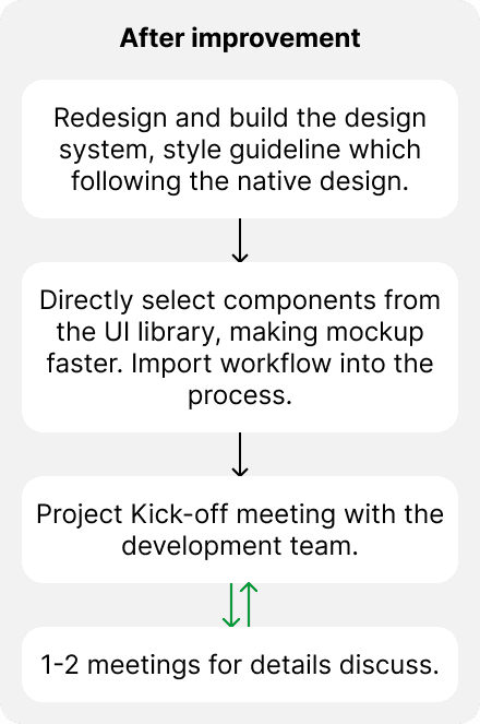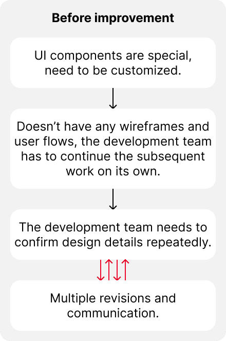 There was no shared component library or alignment between design and engineering, resulting in a longer development cycle and repetitive fixes.