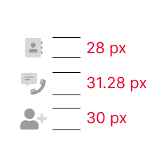 The previous icons were either 30 or 28 pixels in size. They were solid with different shades and featured various styles. While they looked fine individually, they caused visual confusion when integrated into the interface.